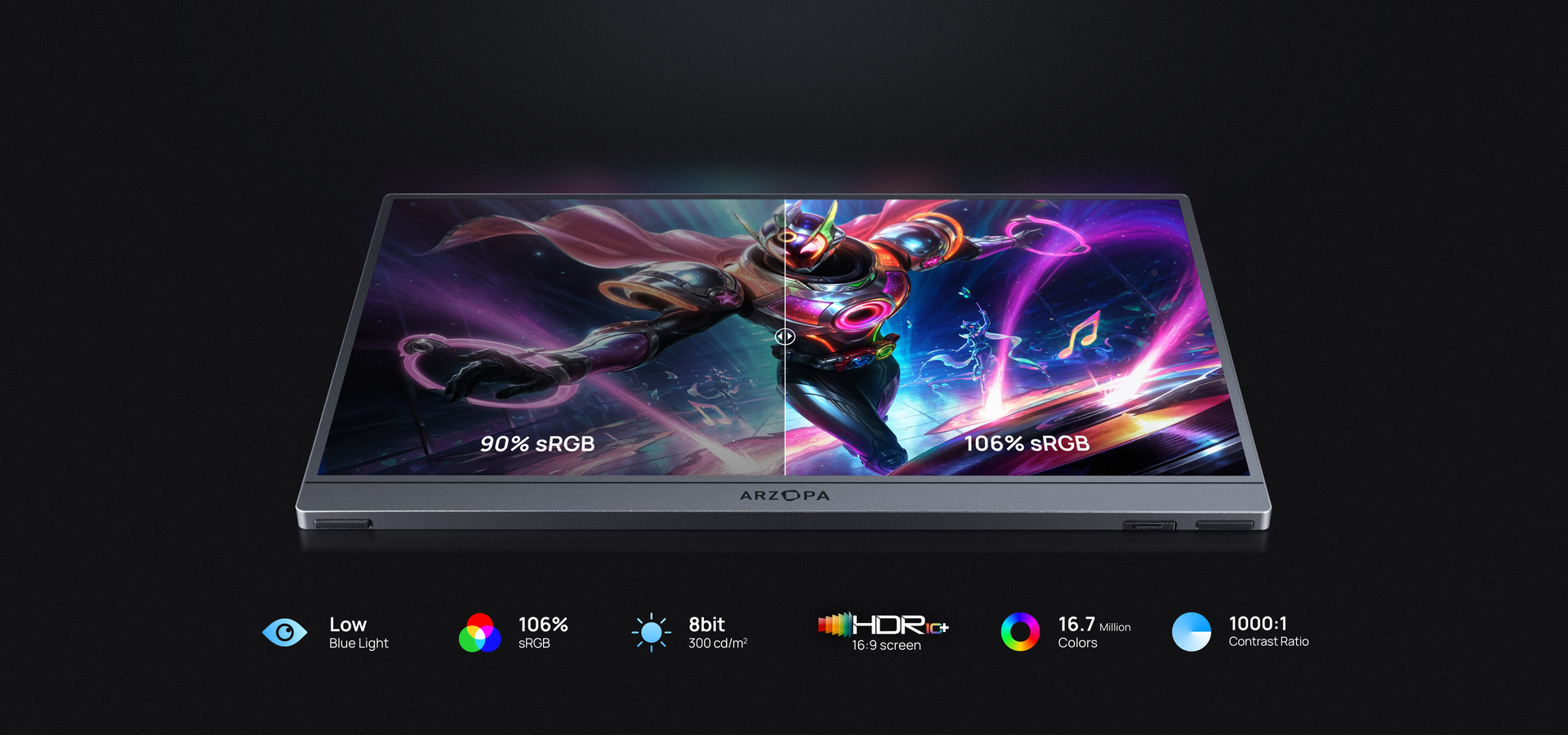 Beyond Standard: True Colors Come Alive on 16.1" 106% sRGB Portable Display