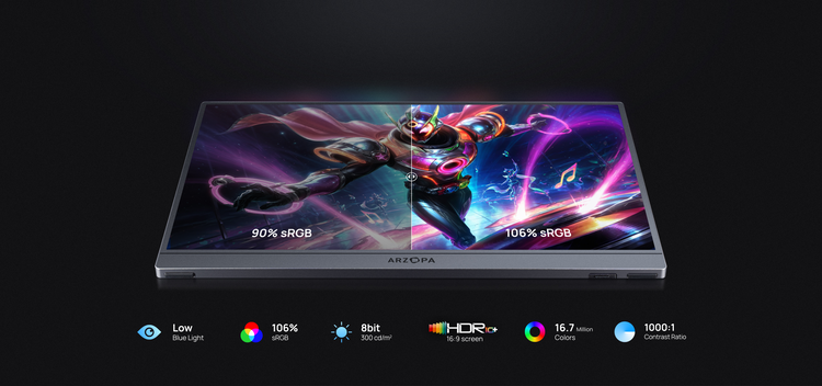 Unlock your mobile workspace with ARZOPA Z1FC portable monitor: crystal-clear HDR10 monitor technology with 106% sRGB color accuracy. The ARZOPA Z1FC portable monitor delivers true-to-life visuals with 144Hz ultra-smooth refresh rate. Just consider it as your portable second computer screen for gaming, design, and beyond. Unlock your mobile workspace with ARZOPA Z1FC portable monitor: crystal-clear HDR10 monitor technology with 106% sRGB color accuracy. The ARZOPA Z1FC portable monitor delivers true-to-life visuals with 144Hz ultra-smooth refresh rate. Just consider it as your portable second computer screen for gaming, design, and beyond.