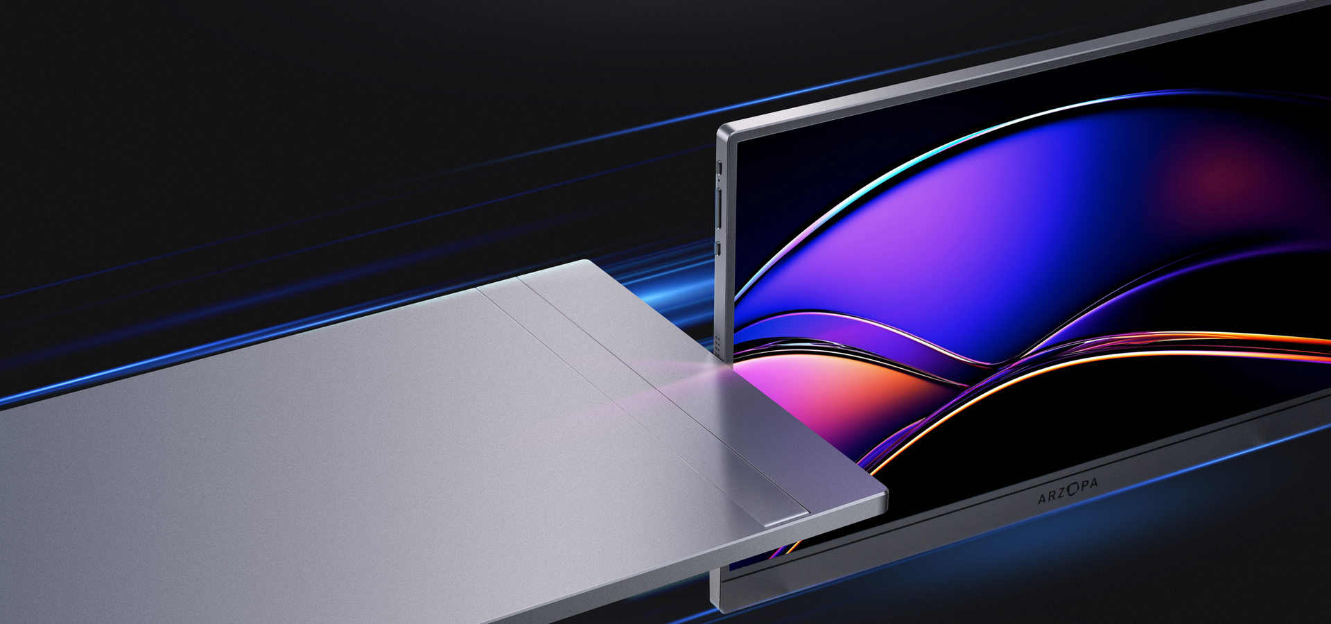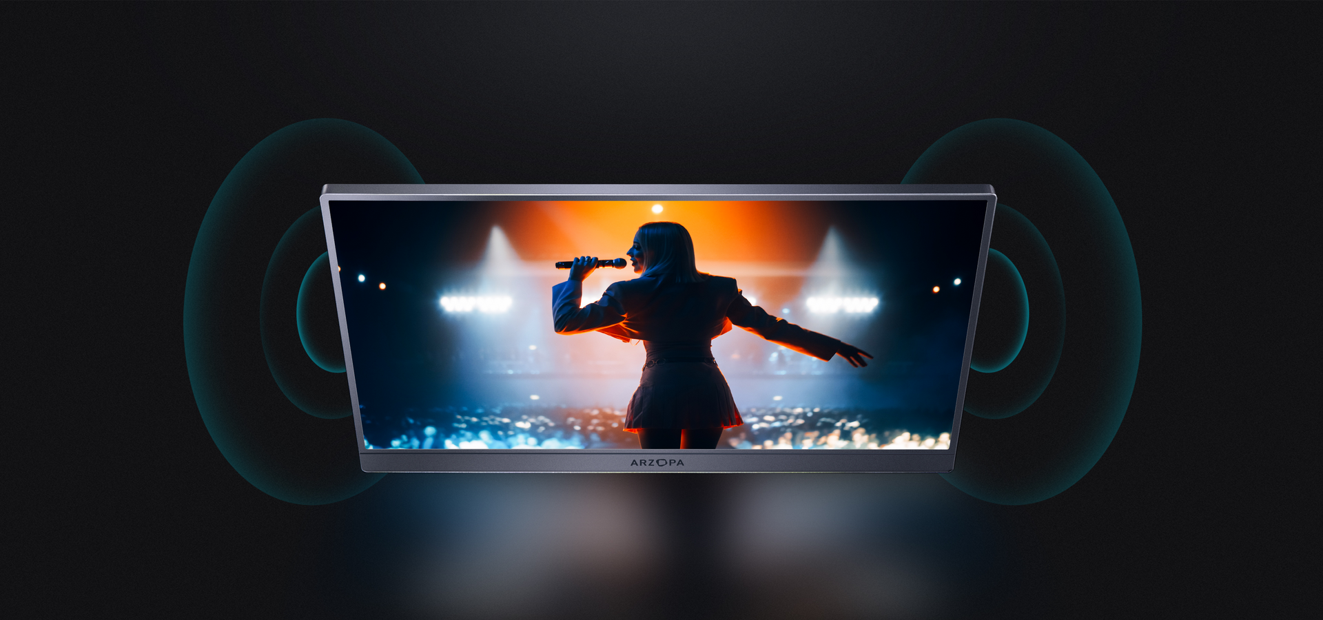 Immersive audio engineered into the Arzopa lightest portable monitor. ARZOPA Z1FC portable laptop screen extender shows cinematic stereo sound.
