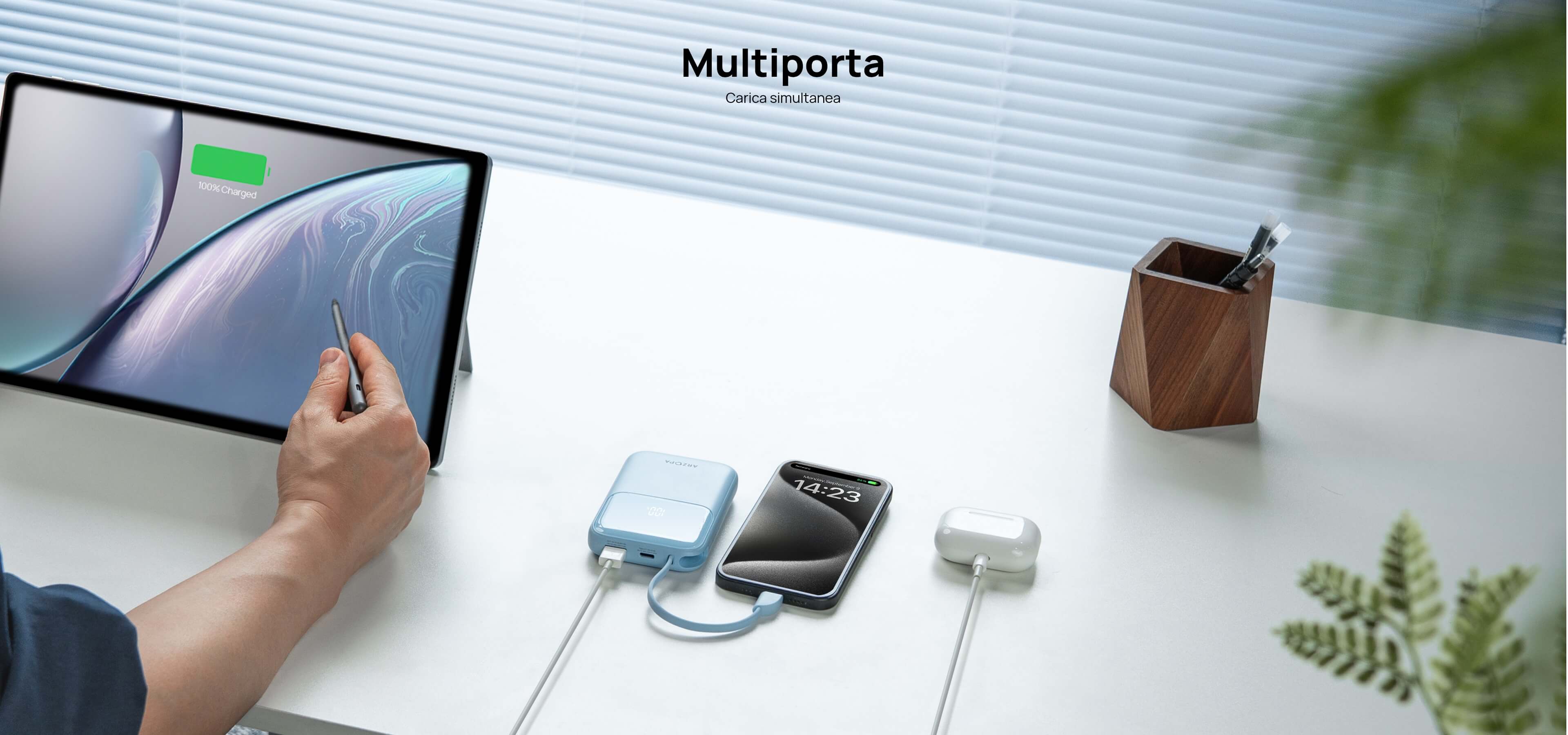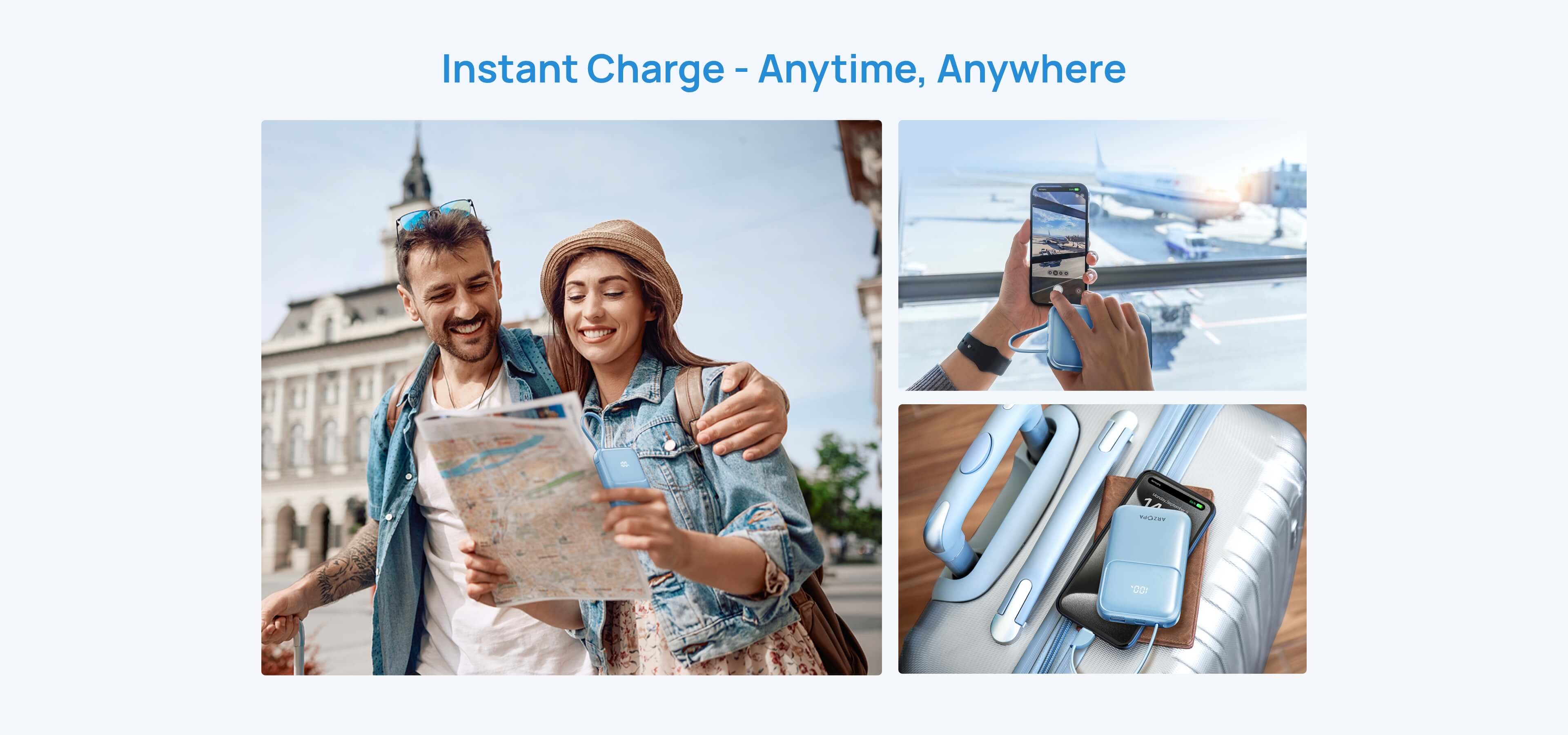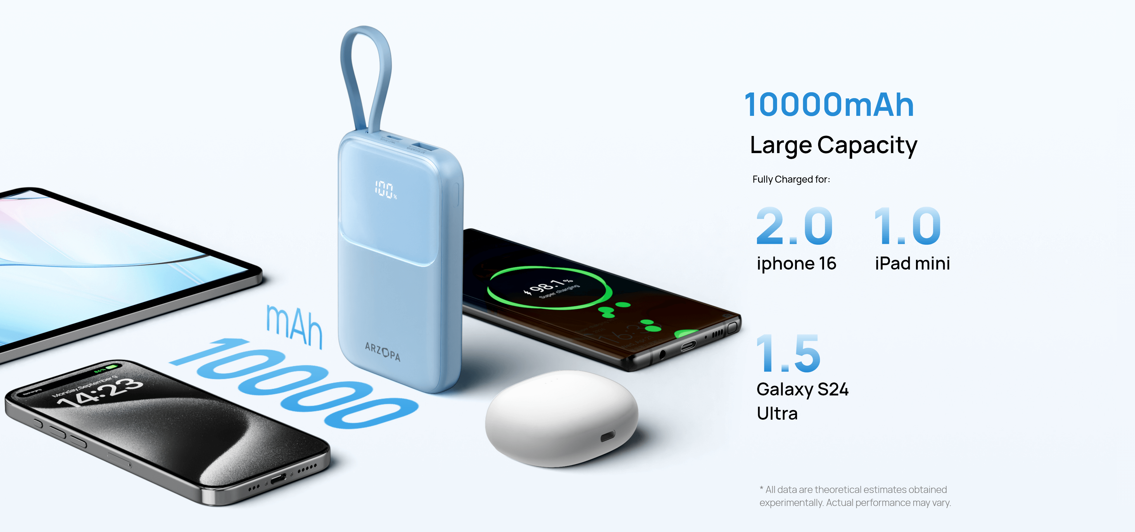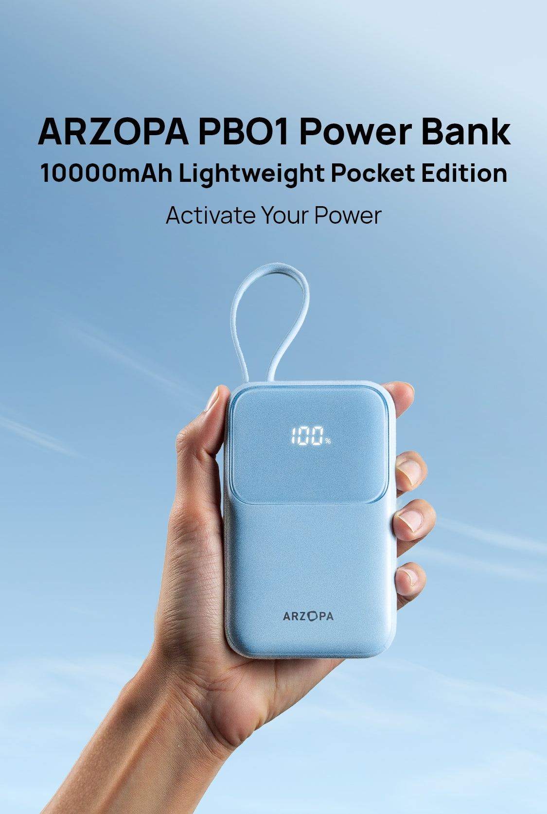 - Built-in Type-C cable + one-tap battery status check (1%-100% real-time).