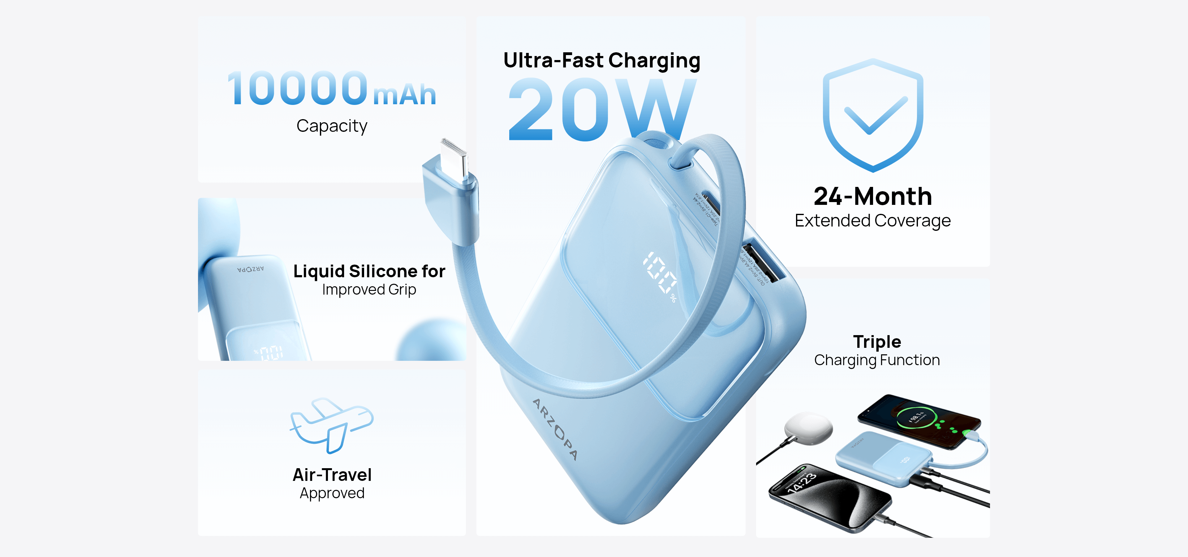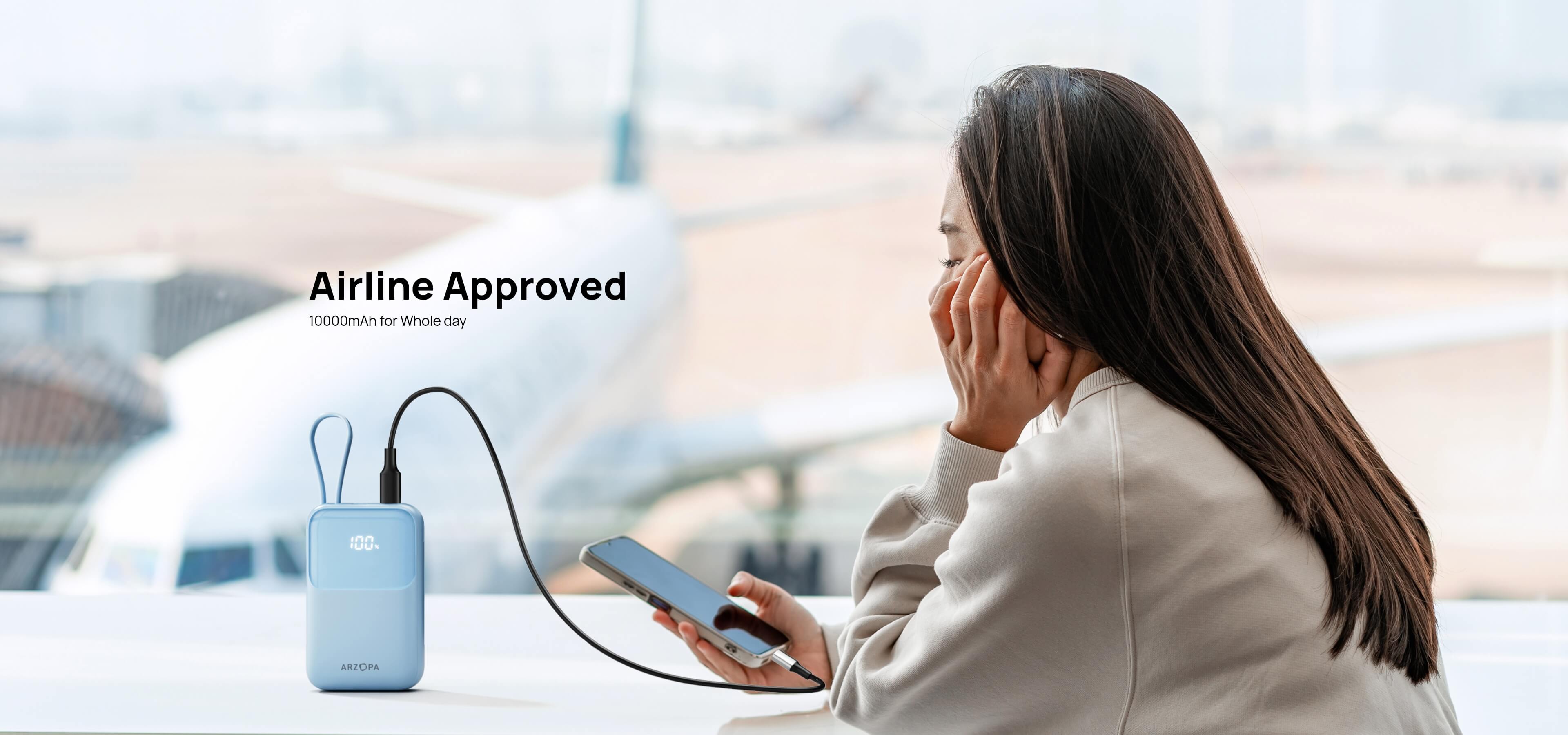 - FAA-approved 10,000mAh battery | All-day power for travel.